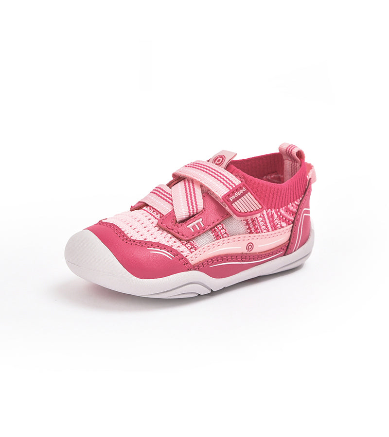 The rubber outsole with flex zones encourages natural foot movement, making it ideal for active toddlers.