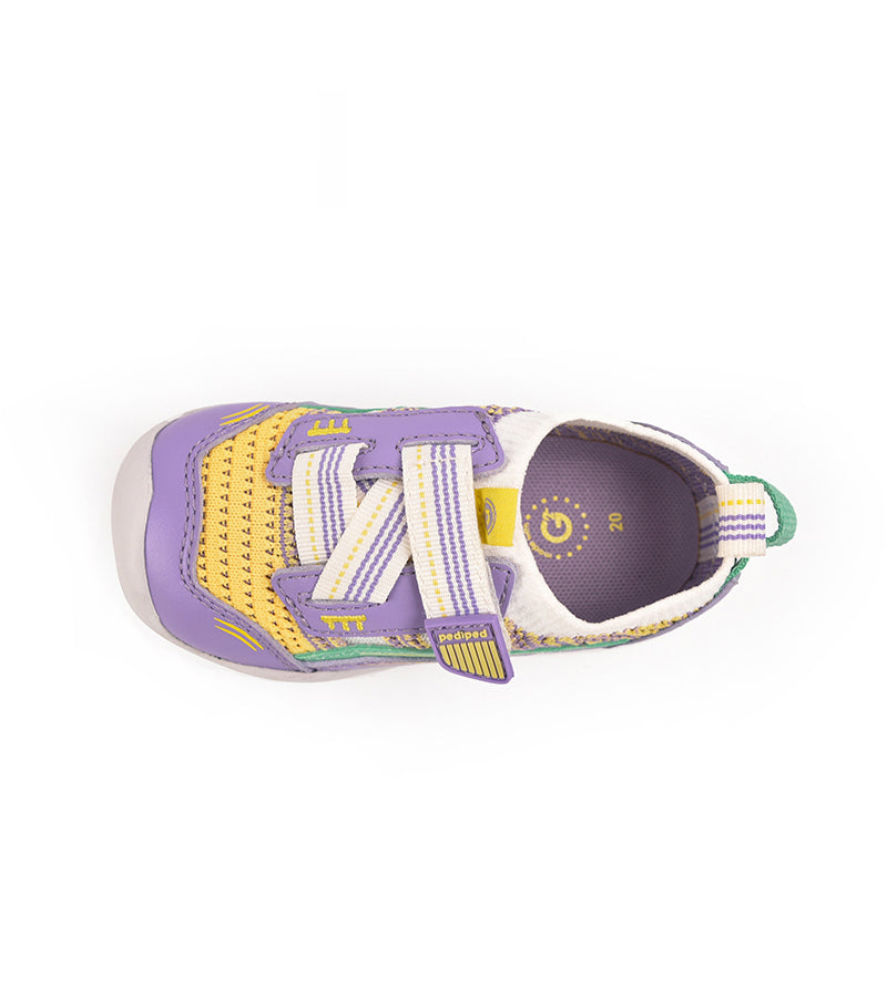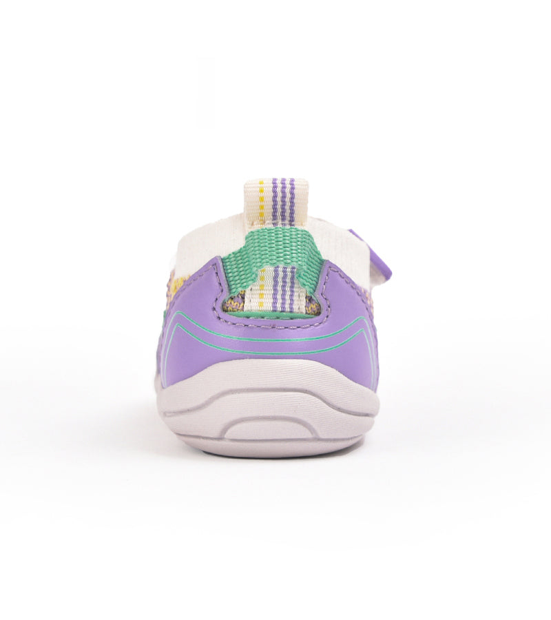 The rubber outsole with flex zones encourages natural foot movement, making it ideal for active toddlers.