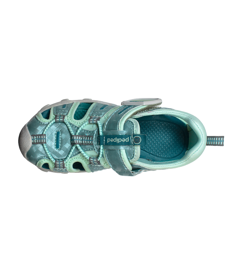 "Canyon アドベンチャーサンダル は、ハイキング、ビーチでの遊び、プールでの水遊びなど、お子さまのアクティブなライフスタイルに最適な一足です。